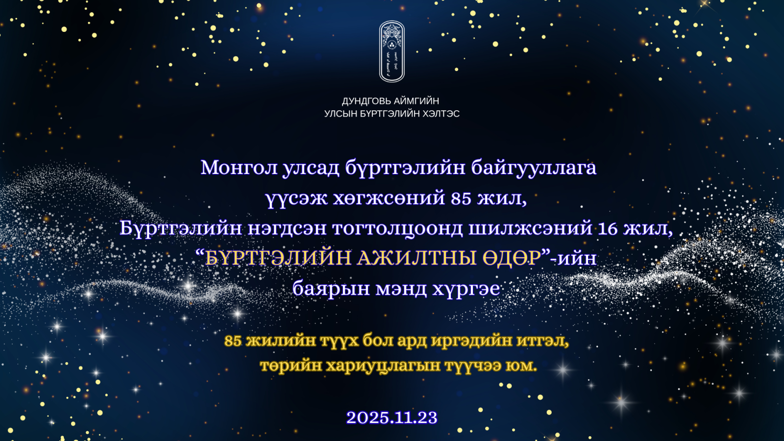 Дэлгэрэнгүй мэдээлэл авах: Улсын бүртгэлийн ерөнхий газар Дундговь аймгийн улсын бүртгэлийн хэлтэс
